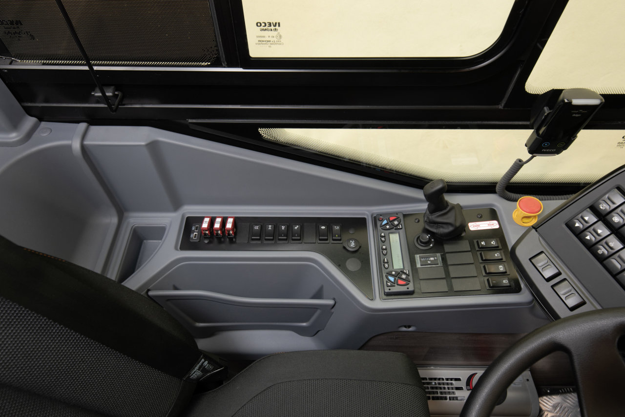 Upravljanje radia na volanu in ena integrirana plošča omogočajo varno in enostavno upravljanje glavnih funkcij, vključno s klimatsko napravo v voznikovem in potniškem prostoru ter neodvisnim ogrevanjem.
