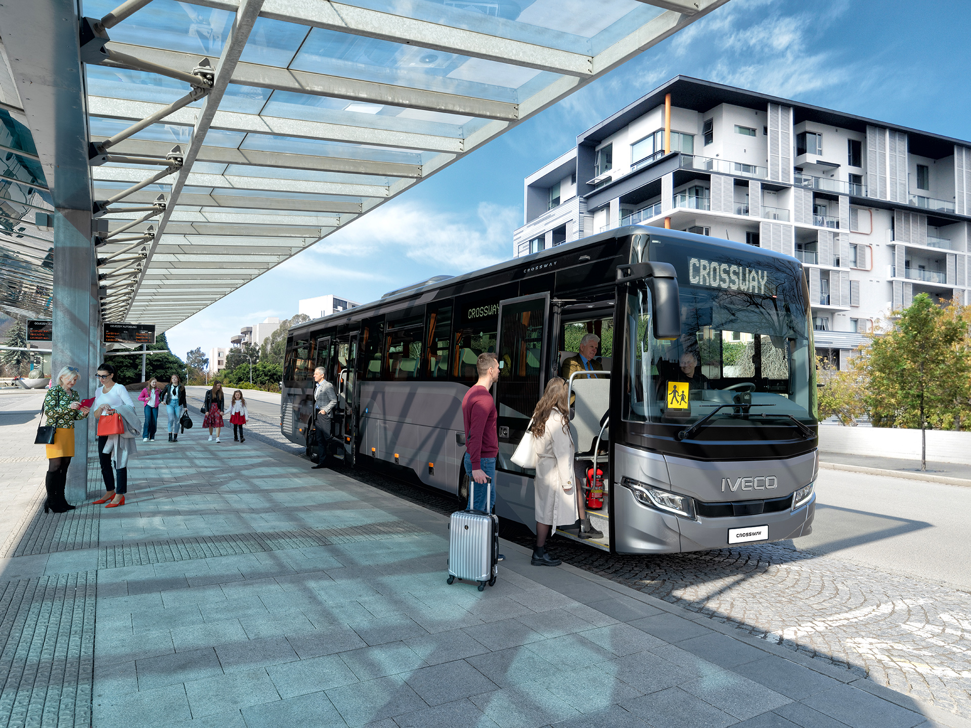 CROSSWAY lahko zaradi svoje vsestranskosti in raznolikosti razpoložljivih različic zlahka zadovolji vse potrebe strank pri vsakem prevozu potnikov.
